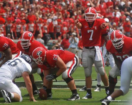 Matthew Stafford continues to add to his portfolio. His arm strength is becoming legendary, and the way he connects with his receivers is magical and beautiful to watch. This game he threw for a career-high of 285 yards. Stafford wasn’t the only Dawg to show on Saturday. Freshman A. J. Green had an impressive evening as well. 159 yard on eight catches and a Touchdown is a great night. Aside from Knowshon’s early leaping Touchdown, he had another 100+ yard night. With 23 carries for 149 yards and 2 Touchdowns, Moreno is quickly becoming mythological in his playing.